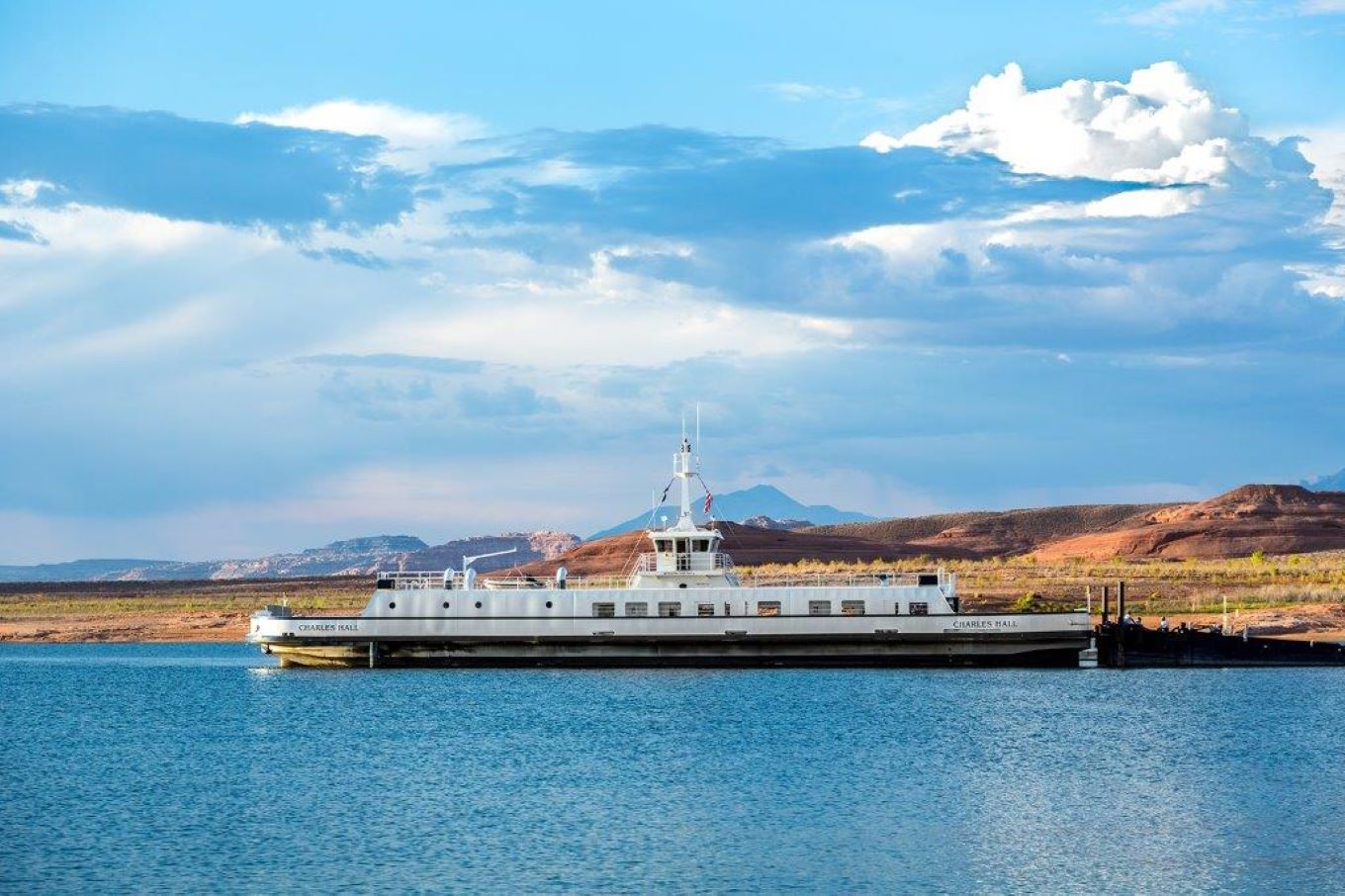 State Route 276 runs through the Glen Canyon National Recreation Area and crosses Lake Powell via the Charles Hall Ferry. Travel time over the water takes approximately 25 minutes. This does not include loading, unloading, and travel times on roads within the park. The ferry’s southern port is at Hall’s Crossing and the northern port is at Bullfrog.